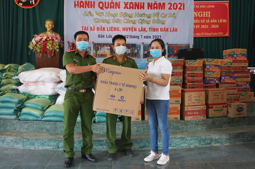 Trong đợt công tâc này, ngoài trao tặng các nhu yếu phẩm, Đoàn công tác đã thăm hỏi, động viên và trao tặng những món quà thiết thực cho các chốt đang thực hiện nhiệm vụ kiểm soát dịch bệnh Covid-19 thuộc xã Đắk Liêng, huyện Lắk, tỉnh Đắk Lắk.