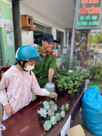 Ô nhiễm rác thải nhựa hay còn gọi là ô nhiễm trắng đang trở thành vấn đề cấp thiết toàn cầu và được xem là thách thức môi trường lớn thứ hai thế giới, sau biến đổi khí hậu. Xác định vai trò của đoàn viên, thanh niên trong bảo vệ môi trường và ý nghĩa của việc lan tỏa, chung tay cải thiện ý thức sống xanh đến mọi người. Đoàn cơ sở Công an huyện đã tham mưu Đảng ủy tổ chức Chương trình “Đổi rác thải nhận cây xanh”. Chương trình đã thu hút được đông đảo nhân dân trên địa bàn tham gia hưởng ứng, các loại rác thải được thu gom bao gồm: giấy, sách báo, bìa, nhựa, kim loại, vỏ lon. Rác thải mang đến chương trình sẽ được quy đổi tương ứng với các loại cây xanh gồm hoa cẩm tú cầu và hoa sen đá. Kết quả, Đoàn cơ sở Công an huyện đã đổi được 40 cây xanh, thu hơn 100kg rác thải.