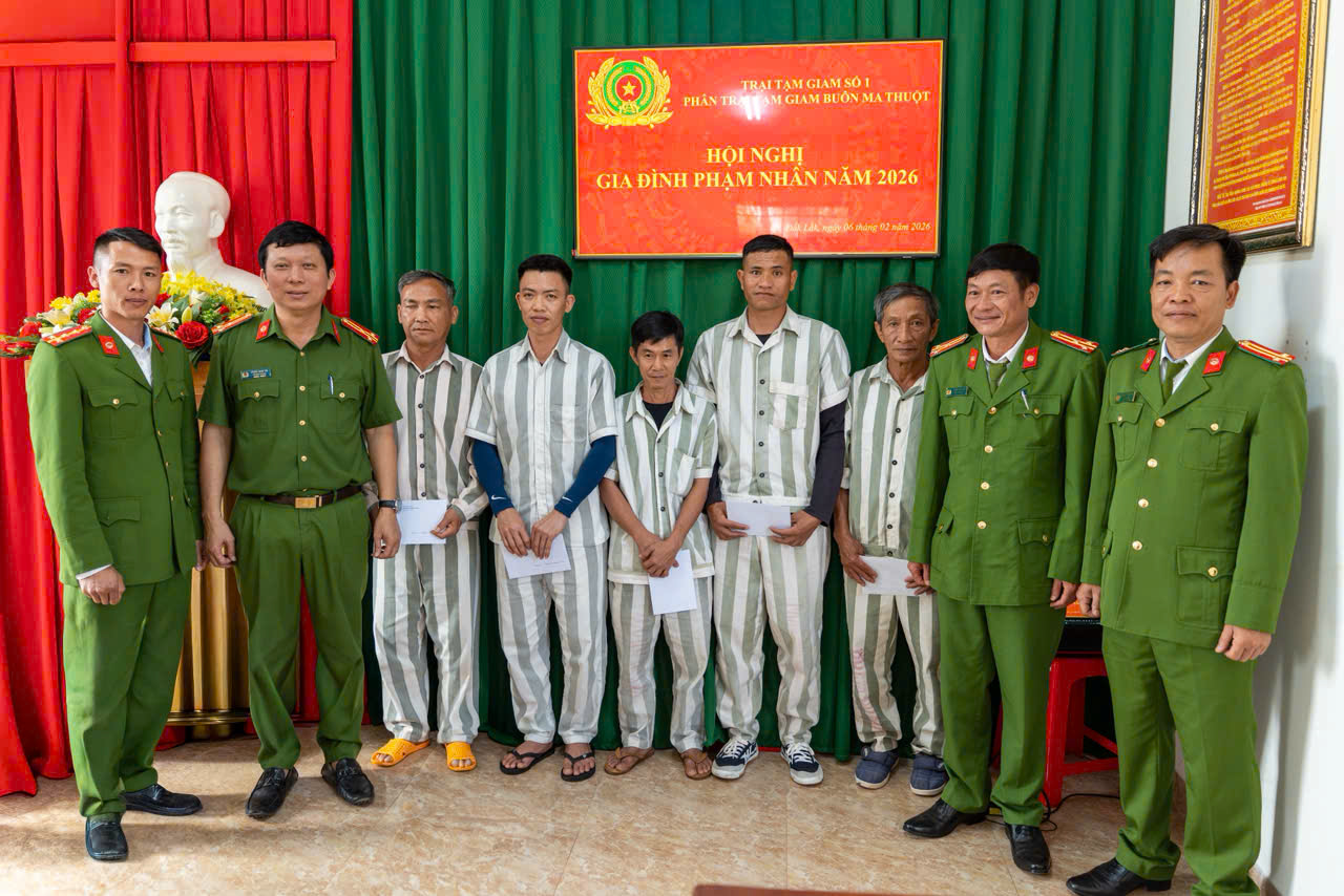 Sáng 06/02/2026, Phân trại tạm giam Buôn Ma Thuột - Trại tạm giam số 1 Công an tỉnh Đắk Lắk đã tổ chức thành công Hội nghị gia đình phạm nhân dịp Tết Nguyên đán Bính Ngọ 2026.