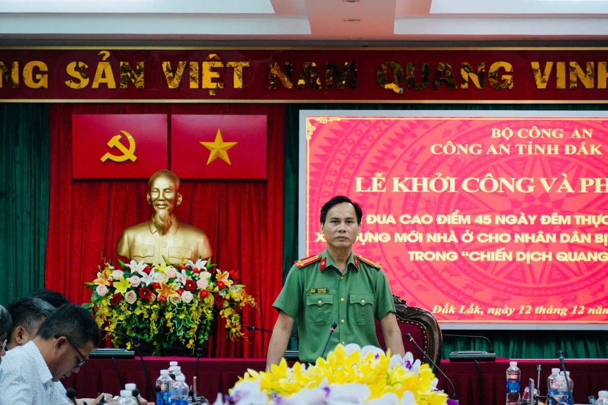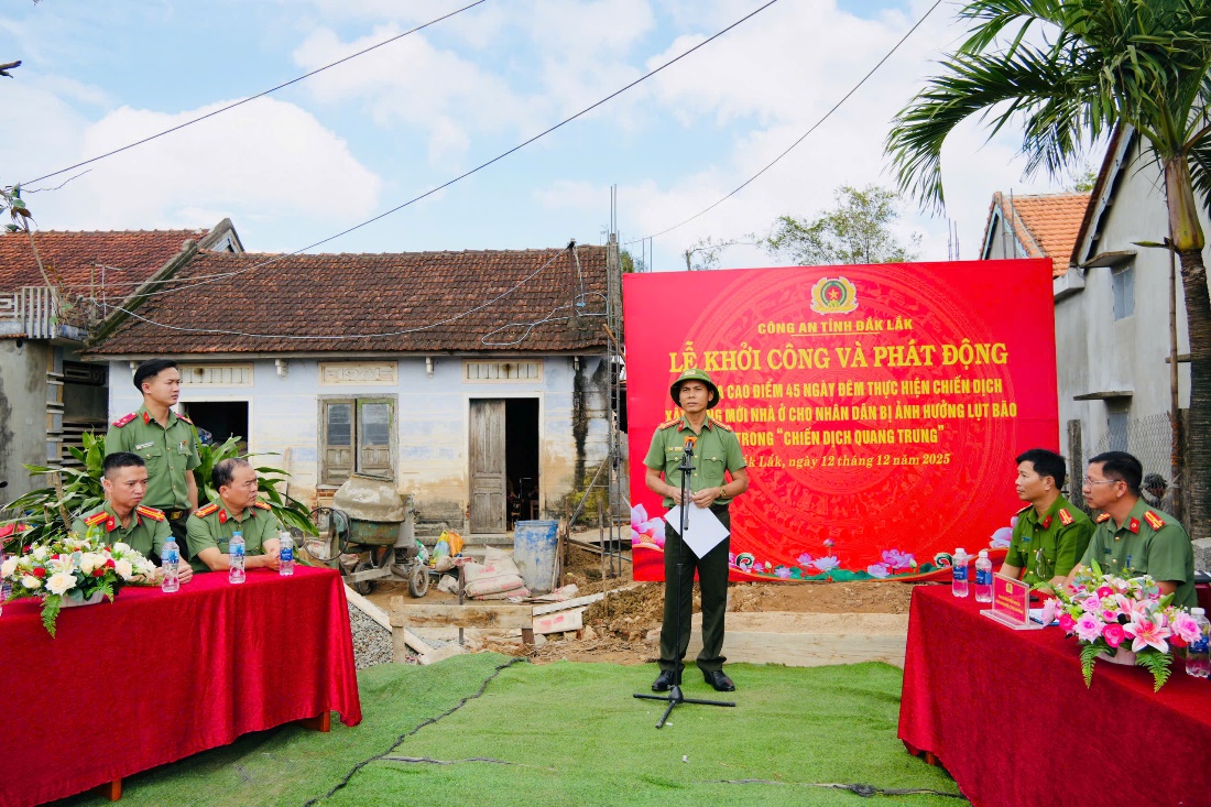 Tại buổi lễ, Đại tá Nguyễn Khỏe – Phó Giám đốc Công an tỉnh đã phát động triển khai cao điểm "Chiến dịch Quang Trung" nhằm xây dựng mới 200 căn nhà cho các hộ gia đình có nhà bị sập, đổ, trôi, hư hỏng nặng do cơn bão số 13 và các đợt mưa lớn từ ngày 15/11 đến 20/11/2025 vừa qua. Việc triển khai thực hiện bám sát chỉ đạo của Thủ tướng Chính phủ, Bộ Công an và UBND tỉnh nhằm hỗ trợ khắc phục hậu quả thiên tai, bảo đảm mỗi hộ dân có nhà mới ổn định cuộc sống trước Tết Nguyên đán Bính Ngọ 2026. Tổng kinh phí xây dựng 200 căn nhà dự kiến khoảng 34 tỷ đồng, tương ứng 170 triệu đồng mỗi căn.