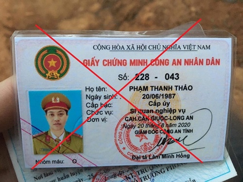 Qua kiểm tra giấy tờ, người vi phạm xuất trình 01 Giấy chứng minh Công an nhân dân số 229043 do Công an tỉnh Long An cấp; nhận thấy có nhiều biểu hiện nghi vấn nên Tổ Cảnh sát giao thông đã tiến hành đấu tranh, khai thác với đối tượng. Qua lấy lời khai ban đầu, đối tượng khai nhận đây là giấy Chứng minh Công an nhân dân giả (không do cơ quan có thẩm quyền cấp) và được đối tượng mua với giá 3,5 triệu đồng.