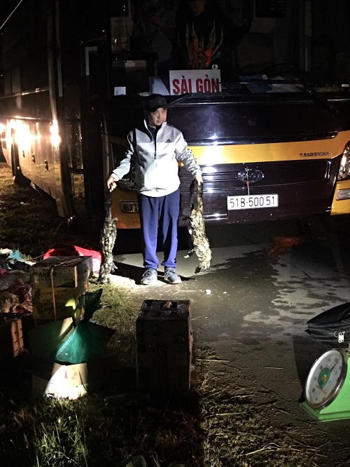 Tiến hành kiểm tra, tổ công tác phát hiện trên xe ôtô khách có 02 cá thể tê tê, 10 cá thể chồn, 02 cá thể lợn rừng, 04 cá thể nhím. Qua làm việc, tài xế Nguyễn Sĩ Tuấn khai nhận các cá thể động vật trên đều không có giấy tờ chứng minh nguồn gốc hợp pháp và được một người dân trú ở tỉnh Kon Tum thuê vận chuyển đến thành phố Hồ Chí Minh để tiêu thụ.