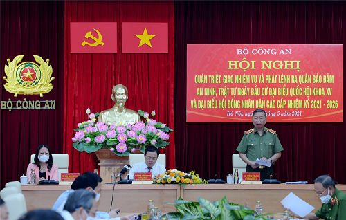 Tại Hội nghị, Bộ trưởng Tô Lâm đã phát lệnh ra quân bảo đảm ANTT Ngày bầu cử đại biểu Quốc hội khóa XV và đại biểu Hội đồng nhân dân các cấp nhiệm kỳ 2021 - 2026 trong toàn lực lượng CAND.