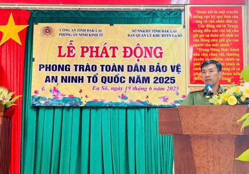 Trước tình hình trên, để thực hiện tốt công tác đảm bảo an ninh nội bộ, an ninh kinh tế, an ninh trật tự, kịp thời phát hiện, ngăn chặn và xử lý các hành vi vi phạm pháp luật trên lĩnh vực lâm nghiệp tại Ban Quản lý Khu bảo tồn thiên nhiên Ea Sô, nhất là hướng tới kỷ niệm 80 năm ngày truyền thống lực lượng Công an nhân dân và 20 năm Ngày hội toàn dân bảo vệ an ninh Tổ quốc (19/8/1945 – 19/8/2025). Chiều ngày 19/6/2025, Phòng An ninh kinh tế (Công an tỉnh Đắk Lắk) đã tổ chức buổi Lễ phát động phong trào Toàn dân bảo vệ an ninh Tổ quốc cho cán bộ nhân viên của Ban Quản lý, buổi phát động có sự tham gia của các đồng chí trong Đảng ủy, Ban giám đốc và trưởng các phòng ban, Đội cơ động, các trạm quản lý bảo vệ rừng.