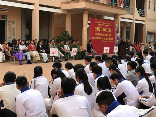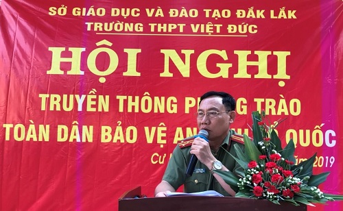 Sáng ngày 04/3/2019, Phòng Xây dựng phong trào bảo vệ ANTQ Công an tỉnh đã phối hợp Công an huyện Cư Kuin tổ chức phát động phong trào toàn dân bảo vệ ANTQ tại Trường THPT Việt Đức (Địa chỉ: Km12, quốc lộ 27, huyện Cư Kuin, tỉnh Đắk Lắk). Tham dự buổi lễ có các đồng chí lãnh đạo Phòng Xây dựng phong trào bảo vệ ANTQ, lãnh đạo Công an huyện Cư Kuin, các đồng chí báo cáo viên pháp luật Công an huyện Cư Kuin và Phòng Cảnh sát điều tra tội phạm về ma túy, Ban Giám hiệu và 900 giáo viên, học sinh Trường THPT Việt Đức.