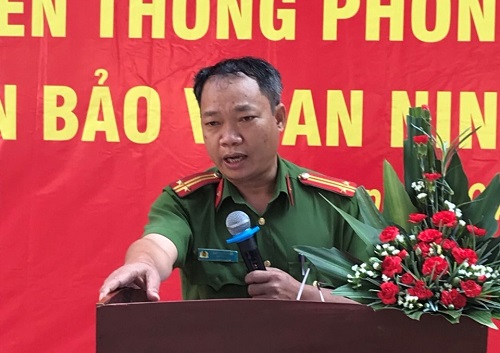 Đ/c Thượng tá Hà Hồng Bôn – Phó trưởng Phòng Xây dựng phong trào bảo vệ ANTQ phát biểu tại buổi tuyên truyền