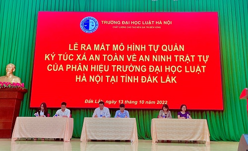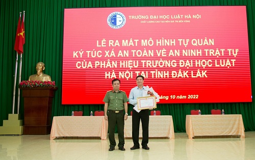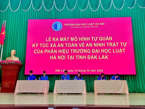 Sáng ngày 13/10/2022, tại Phân hiệu Trường Đại học Luât Hà Nội tại Đắk Lắk, Phòng An ninh chính trị nội bộ, Công an tỉnh phối hợp với Phân hiệu Trường Đại học Luật Hà Nội tổ chức Lễ ra mắt mô hình “Ký túc xá an toàn về ANTT”.
