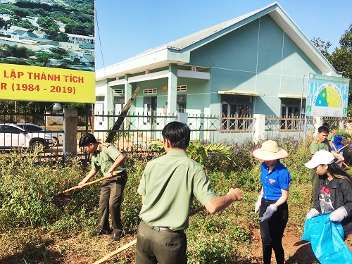 Phát quang, dọn dẹp cảnh quan các tuyến đường chính của xã Ea M’Droh, góp phần nâng cao ý thức của người dân trong công tác giữ gìn, bảo vệ môi trường sống xanh – sạch – đẹp.