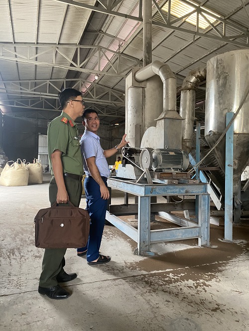 Cán bộ Phòng An ninh kinh tế Công an tỉnh Đắk Lắk làm việc với cơ sở sản xuất phân bón tại Khu Công nghiệp Hòa Phú