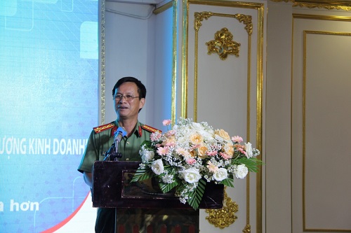 Đồng chí Đại tá Nguyễn Quốc Khánh – Trưởng phòng An ninh kinh tế phát biểu tại buổi lễ
