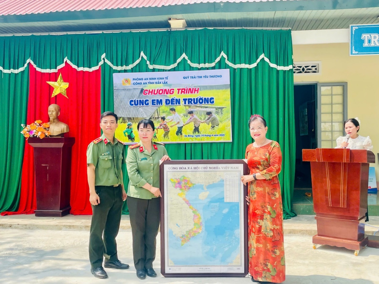 Sáng ngày 19/4/2025, tại Điểm trường 10/3 Trường tiểu học Ea Bông, xã Ea Bông, huyện Krông Ana, Phòng An ninh kinh tế Công an tỉnh phối hợp với Quỹ trái tim yêu thương, Phòng Giáo dục và Đào tạo huyện Krông Ana, UBND xã Ea Bông, Ban Giám hiệu Trường tiểu học Ea Bông tổ chức Chương trình “Cùng em đến trường” với chuỗi hoạt động ý nghĩa.