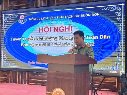 Ngày 19/9/2022, Phòng An ninh đối ngoại, Công an tỉnh Đắk Lắk đã phối hợp tổ chức phát động phong trào toàn dân bảo vệ an ninh Tổ quốc tại điểm du lịch sinh thái Troh Bư, huyện Buôn Đôn. Tham dự hội nghị có lãnh đạo Phòng An ninh đối ngoại, Phòng Xây dựng phong trào bảo vệ an ninh Tổ quốc, Công an huyện Buôn Đôn, lãnh đạo chính quyền, Công an xã Ea Nuôl, đại biểu các khu, điểm du lịch trên địa bàn huyện Buôn Đôn, cùng Ban Giám đốc và toàn thể cán bộ, nhân viên điểm du lịch sinh thái Troh Bư.