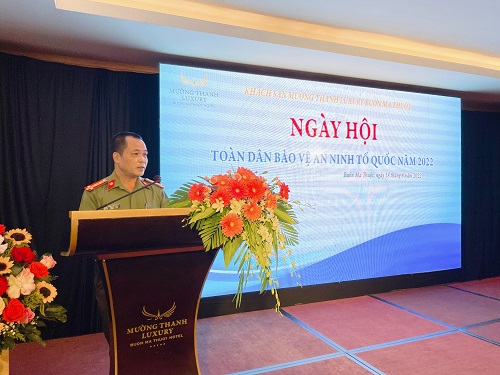 Phát biểu tại Ngày hội, thừa ủy quyền của Đảng ủy, Lãnh đạo Công an tỉnh Đắk Lắk, đồng chí Đại tá Phạm Xuân Thăng - Bí thư Đảng ủy, Trưởng phòng An ninh Đối ngoại đã ghi nhận, biểu dương và đánh giá cao sự đóng góp của tập thể cán bộ, nhân viên Khách sạn Mường Thanh Luxury Buôn Ma Thuột trong triển khai thực hiện phong trào toàn dân bảo vệ an ninh Tổ quốc. Đồng chí khẳng định, thời gian qua, khách sạn Mường Thanh Luxury Buôn Ma Thuột đang dần trở thành một điểm sáng trong phong trào toàn dân bảo vệ an ninh Tổ quốc trên địa bàn tỉnh; trong đó, đã phối hợp cùng lực lượng Công an Đắk Lắk ra mắt 01 mô hình mới “Khách sạn Mường Thanh Luxury Buôn Ma Thuột, điểm đến an toàn, thân thiện, mến khách” - đây là mô hình “điểm” của khối đơn vị, doanh nghiệp trong phong trào toàn dân bảo vệ an ninh Tổ quốc. Mô hình đã góp phần nâng cao ý thức trong tự phòng, tự quản, tự bảo vệ của đội ngũ nhân viên, vận động khách lưu trú nâng cao ý thức cảnh giác, không vi phạm an ninh trật tự trong thời gian lưu trú tại khách sạn. Đây là tiền đề để lực lượng Công an Đắk Lắk tiếp tục tham mưu, nhân rộng mô hình này ở các khách sạn, cơ sở lưu trú khác. Góp phần vào việc đảm bảo tình hình an ninh, trật tự địa bàn, tạo tâm lý yên tâm cho du khách tại cơ sở lưu trú, điểm du lịch; xây dựng hình ảnh “Đắk Lắk - Điểm đến an toàn, thân thiện, đậm đà bản sắc Tây Nguyên”.