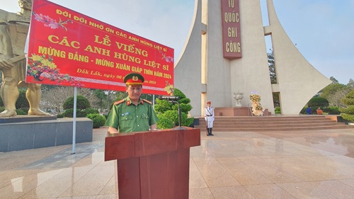 Tại buổi lễ dâng hương, đồng chí Thượng tá Cao Tiến Phu – Bí thư Đảng ủy, Trưởng phòng Cảnh sát cơ động cùng cán bộ, chiến sĩ đã bày tỏ lòng biết ơn sâu sắc trước những hy sinh to lớn của các anh hùng liệt sĩ trong sự nghiệp giải phóng dân tộc, bảo vệ độc lập tự do của Tổ quốc. Đồng chí Cao Tiến Phu – Trưởng phòng Cảnh sát cơ động khẳng định cán bộ, chiến sĩ trong đơn vị không bao giờ quên những công lao, sự cống hiến, hy sinh của các anh hùng liệt sĩ trong cuộc đấu tranh giải phóng dân tộc, bảo vệ Tổ quốc. Trước anh linh của các liệt sĩ, cán bộ chiến sĩ phòng Cảnh sát cơ động Công an tỉnh Đắk Lắk nguyện hứa viết tiếp truyền thống vinh quang của thế hệ cha anh đi trước, tuyệt đối trung thành với lý tưởng của Đảng, mãi đi theo con đường mà Đảng và Bác Hồ đã lựa chọn, đoàn kết thống nhất, nỗ lực phấn đấu vượt qua khó khăn, thử thách, cùng với toàn lực lượng Công an tỉnh Đắk Lắk tiếp tục lập nhiều chiến công để bảo vệ cuộc sống bình yên, hạnh phúc cho Nhân dân.