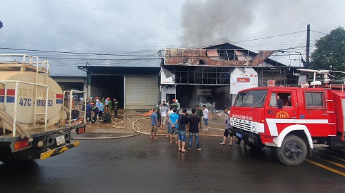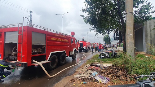 Ngay sau đó, phòng Cảnh sát PCCC và CNCH Công an tỉnh Đắk Lắk đã điều động 8 xe chữa cháy cùng hàng chục CBCS phối hợp với Công an thành phố Buôn Ma Thuột đến hiện trường tham gia giập lửa. Tại hiện trường do xưởng kinh doanh toàn đồ nhựa và giấy nên ngọn lửa nhanh chóng bùng cháy dữ dội tạo thành những cột khói cao hàng trăm mét. Lúc này để ngăn đám cháy không lan rộng ra những hộ dân liền kề, lực lượng chữa cháy đã phải cắt cửa cuốn, đục tường để dập lửa từ hai bên của xưởng và nỗ lực đưa những tài sản còn lại ra bên ngoài. Vụ hoả hoạn không gây thiệt hại về người nhưng toàn bộ mái nhà xưởng bị đổ sập và rất nhiều tài sản trong kho bị thiêu rụi hoàn toàn.