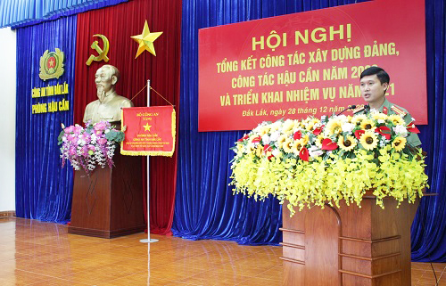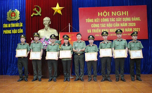 Năm 2020, được sự lãnh đạo, chỉ đạo sâu sát của Đảng ủy, lãnh đạo Công an tỉnh, phòng Hậu cần đã bám sát kế hoạch công tác Công an và các nhiệm vụ trọng tâm, tập trung lãnh đạo, chủ động triển khai toàn diện các mặt công tác xây dựng Đảng, công tác bảo đảm hậu cần đáp ứng các yêu cầu công tác, chiến đấu và xây dựng lực lượng trong toàn Công an tỉnh. Trong đó, đã tổ chức thành công Đại hội các chi bộ và Đại hội Đảng bộ Phòng Hậu cần nhiệm kỳ 2020 – 2021; bảo đảm hậu cần phục vụ lực lượng Công an tỉnh thực hiện nhiệm vụ bảo vệ an ninh, an toàn Đại hội đại biểu Đảng bộ tỉnh Đắk Lắk lần thứ XVII, nhiệm kỳ 2020 – 2025; Đại hội Đảng bộ Công an tỉnh Đắk Lắk lần thứ XIII, nhiệm kỳ 2020 – 2025; tiếp tục triển khai Nghị quyết số 11-NQ/TU, ngày 30/5/2019 của Ban Thường vụ Tỉnh ủy về “Xây dựng lực lượng Công an xã chính quy”, phục vụ công tác phòng chống dịch Covid-19 trong toàn Công an tỉnh và tại các khu vực cách ly của UBND tỉnh…. Với những thành tích nổi bật đạt được, phòng Hậu cần Công an tỉnh vinh dự được Bộ Công an tặng Cờ thi đua vì đã có thành tích xuất sắc trong phong trào thi đua “Vì an ninh Tổ quốc” năm 2020.