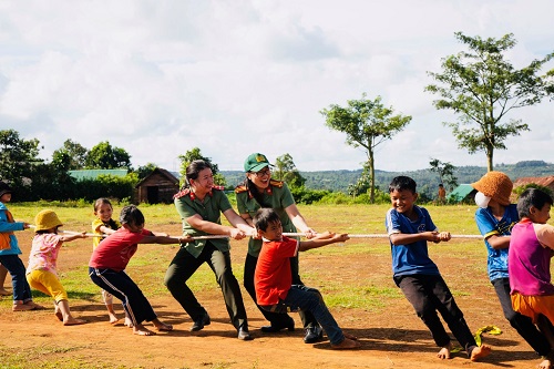 Giao lưu thể dục thể thao, vui chơi với người dân trên địa bàn