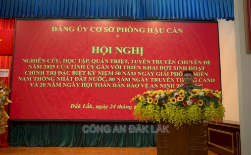 Cũng trong chuỗi hoạt động ý nghĩa, chiều ngày 24/4/2025, Đảng ủy Phòng Hậu cần đã tổ chức Hội nghị nghiên cứu, học tập, quán triệt, tuyên truyền về Chuyên đề năm 2025 của Tỉnh ủy gắn với triển khai đợt sinh hoạt chính trị đặc biệt kỷ niệm 50 năm Ngày Giải phóng Miền Nam thống nhất đất nước, 80 năm Ngày truyền thống lực lượng Công an nhân dân và 20 năm Ngày hội toàn dân bảo vệ an ninh tổ quốc. Tại Hội nghị, các đồng chí trong cấp ủy, lãnh đạo đơn vị đã tiến hành quán triệt nội dung chuyên đề năm 2025 của Tỉnh ủy “Học tập và làm theo tư tưởng, đạo đức, phong cách Hồ Chí Minh về thực hiện tiến bộ, công bằng xã hội; quan tâm chăm lo đời sống vật chất, tinh thần cho đồng bào các dân tộc tỉnh Đắk Lắk”; nội dung cơ bản Kết luận số 137-KL/TW ngày 28/3/2025 của Bộ Chính trị, Ban Bí thư về Đề án sắp xếp, tổ chức lại đơn vị hành chính các cấp và xây dựng mô hình tổ chức chính quyền địa phương 2 cấp; một số nội dung Nghị quyết Hội nghị lần thứ 11 Ban Chấp hành Trung ương Đảng khóa XIII. Bên cạnh đó, thực hiện tuyên truyền cuốn sách “Tuyệt đối trung thành với Tổ quốc, với Đảng, Nhà nước và Nhân dân – Sáng ngời tư cách người Công an cách mạng” của đồng chí Tổng Bí thư Tô Lâm và trình chiếu Chương trình nghệ thuật chính luận “Ký ức để lại” do Đảng ủy Công an Trung ương chủ trì, phối hợp Tỉnh ủy, UBND tỉnh Tây Ninh thực hiện.