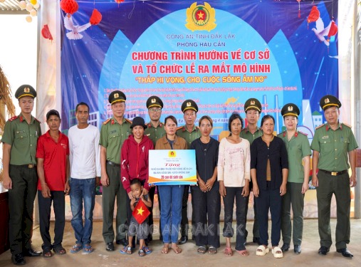 Trước đó, vào sáng ngày 24 /4 /2025, Đảng ủy Phòng Hậu cần phối hợp cùng Đảng uỷ, chính quyền địa phương và Công an các xã bàn giao nhà mới cho các hộ nghèo, cận nghèo thuộc Đề án 214 của UBND tỉnh giao Công an tỉnh chủ trì thực hiện tại xã Dang Kang và Ea Trul (huyện Krông Bông) cùng xã Buôn Triết và Đắk Liêng (huyện Lắk). Trong lễ bàn giao, Phòng Hậu cần kết hợp với Công ty TNHH Anh Tuấn trao tặng 218 phần quà (mỗi phần quà trị giá 1,5 triệu đồng) đến các hộ dân của các xã nói trên. Đây là kết quả của nhiều tháng vận động nguồn lực, huy động công sức CBCS, LĐHĐ và sự chung tay của các đơn vị trong và ngoài ngành, nhằm hiện thực hoá ước mơ về những mái ấm khang trang cho bà con có hoàn cảnh khó khăn, góp phần ổn định đời sống, củng cố niềm tin và tinh thần vươn lên thoát nghèo, góp phần thực hiện giảm nghèo và phát triển kinh tế - xã hội của địa phương, sát cánh cùng lực lượng Công an giữ vững an ninh chính trị và trật tự an toàn xã hội trên địa bàn. Tổng kinh phí thực hiện chương trình khoảng 330 triệu.