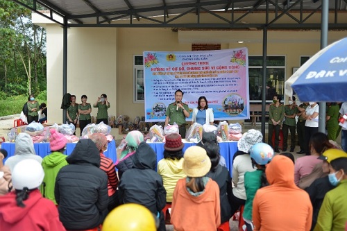 Buôn Tơ Rang A, xã Cư Drăm, huyện Krông Bông là một địa bàn thuộc vùng 3 rất khó khăn, đa số người dân nơi đây là hộ nghèo và cận nghèo. Trong dịp này, cùng với tấm lòng nhân ái và sự nhiệt huyết, đoàn công tác đã trao tặng 100 suất quà là các nhu yếu phẩm thiết yếu cùng quần, áo ấm cho các gia đình có hoàn cảnh đặc biệt khó khăn, gia đình chính sách nhân dịp Tết Nguyên đán Qúy Mão. Đồng thời, phối hợp với Bệnh viên Công an tỉnh tổ chức khám bệnh cho người dân, tư vấn tình trạng sức khỏe, cập nhật kịp thời các kiến thức phòng, tránh một số bệnh phổ biến và cấp phát thuốc miễn phí cho hơn 130 lượt người dân có hoàn cảnh khó khăn và gia đình chính sách.