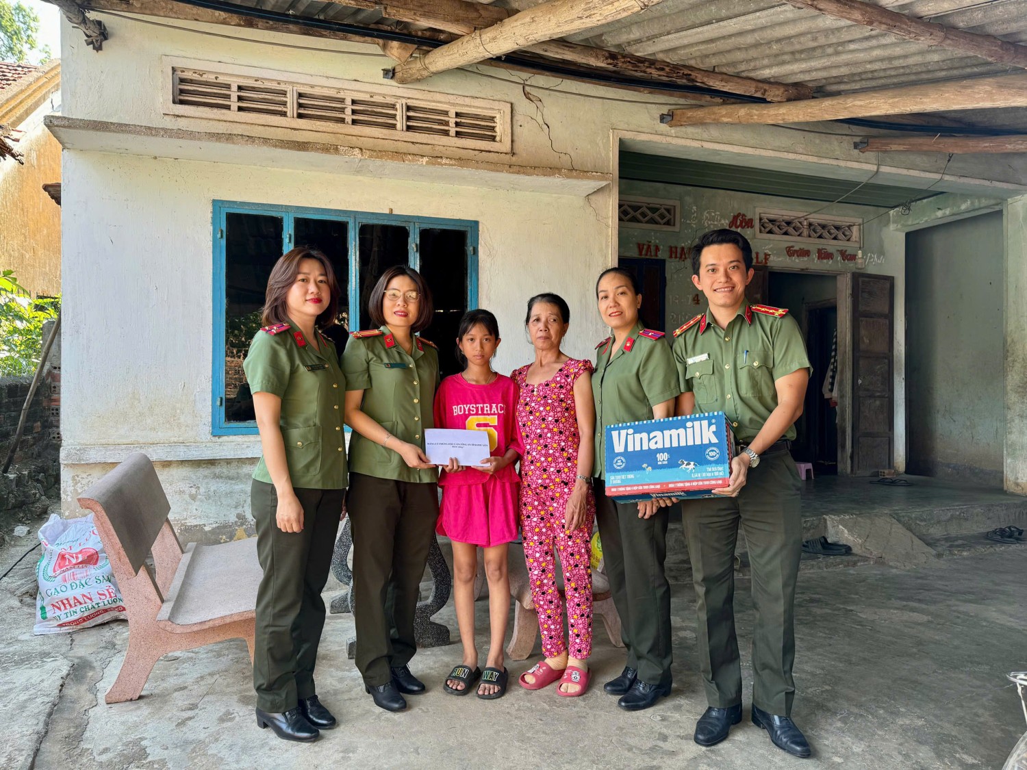 Chi đoàn và Hội Phụ nữ Phòng Hậu cần Công an tỉnh Phú Yên tổ chức thăm hỏi, tặng quà tại các địa chỉ an sinh xã hội tại địa bàn xã An Cư huyện Tuy An cháu Ngô Thị Tuyết Hằng, sinh năm 2012, nhận nuôi dưỡng đỡ đầu năm 2018; xã Bình Kiến cháu Trần Nguyễn Thảo My, sinh năm 2010, nhận nuôi dưỡng đỡ đầu năm 2018; xã Hoà Kiến thành phố Tuy Hoà cháu Nguyễn Khánh Hồi, sinh năm 2016, nhận nuôi dưỡng đỡ đầu năm 2023; xã Hoà Thành thị xã Đông Hoà cháu Huỳnh Xuân Phúc, sinh năm 2021 và cháu Huỳnh Thanh Mai, sinh năm 2019, nhận nuôi dưỡng đỡ đầu năm 2024. Hoạt động ý nghĩa này thể hiện tinh thần tương thân tương ái, trách nhiệm cộng đồng sâu sắc của cán bộ, chiến sĩ lực lượng hậu cần Công an tỉnh. Đoàn đã đến thăm và trao tặng các phần quà bao gồm tiền mặt và sữa cho các cháu mà đơn vị nhận nuôi đỡ đầu. Những món quà tuy nhỏ nhưng chứa đựng sự sẻ chia, động viên lớn lao, góp phần giúp đỡ các đối tượng yếu thế vơi bớt khó khăn trong cuộc sống. Đây là hoạt động thường niên, thể hiện sự quan tâm sâu sắc của đơn vị đối với cộng đồng. Và cũng là dịp để cán bộ, chiến sĩ Phòng Hậu cần Công an tỉnh Phú Yên thể hiện vai trò xung kích, tình nguyện, góp sức vào công tác an sinh xã hội của tỉnh nhà.