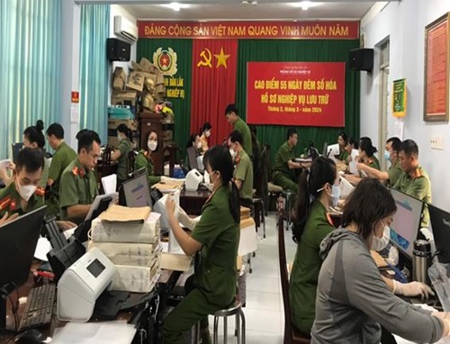 Được sự quan tâm chỉ đạo sát sao của lãnh đạo Công an tỉnh, sự phối hợp của các đơn vị, Công an cấp huyện hỗ trợ về con người, thiết bị, nhất là tinh thần trách nhiệm, khắc phục mọi điều kiện khó khăn của CBCS về công tác (CBCS Phòng Hồ sơ nghiệp vụ vừa hoàn thành định mức chỉ tiêu số hóa được giao, vừa hoàn thành công tác chuyên môn; một số đồng chí là Công an xã được trưng tập, dù tham gia số hóa hồ sơ nhưng vẫn đảm bảo theo dõi, báo cáo kết quả thực hiện Đề án 06 của địa bàn được phân công phụ trách), gia đình (con nhỏ, chồng công tác xa)…, tính đến 22/02/2024, với thời gian làm việc 10 tiếng/ngày, cán bộ Phòng Hồ sơ nghiệp vụ và cán bộ tăng cường đã hoàn thành số hóa gần 20 ngàn hồ sơ, tài liệu.
