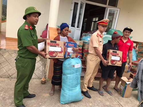 Các nhu yếu phẩm được Công an huyện Hướng Hóa, tỉnh Quảng Trị tiếp nhận trao trực tiếp đến người dân