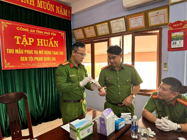 Nhận thức được vai trò của công tác thu mẫu phục vụ mở rộng tàng thư gen tội phạm quốc gia là hoạt động có ý nghĩa quan trọng, vừa góp phần nâng cao năng lực chuyên môn của lực lượng chức năng, vừa tạo tiền đề cho việc xây dựng một hệ thống dữ liệu gen hiện đại, phục vụ hiệu quả công tác điều tra, đấu tranh phòng chống tội phạm trong giai đoạn hiện nay. Sau khi tham mưu Giám đốc Công an tỉnh chọn cử cán bộ đi tập huấn tại Viện Khoa học hình sự, ngày 27/02/2025, Phòng Kỹ thuật hình sự Công an tỉnh Phú Yên đã mở lớp “TẬP HUẤN THU MẪU PHỤC VỤ MỞ RỘNG TÀNG THƯ GEN TỘI PHẠM QUỐC GIA” cho cán bộ chiến sỹ Trại giam Xuân Phước.