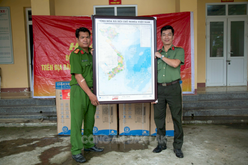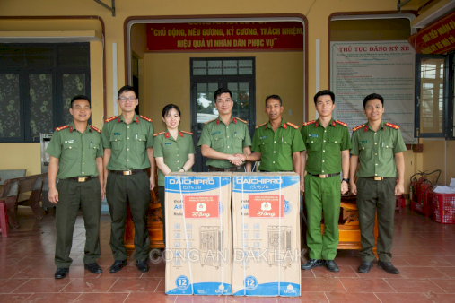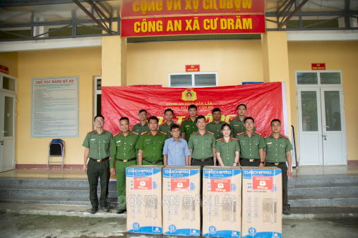 Tại trụ sở Công an xã Cư Drăm, Yang Mao và Cư Pui thuộc huyện Krông Bông, đoàn đã tổ chức thăm hỏi, động viên và trao tặng các phần quà là quạt hơi nước để phục vụ CBCS Công an 03 xã sinh hoạt hàng ngày. Đồng thời, trao tặng 01 bản đồ Việt Nam đối với Công an xã Cư Drăm.