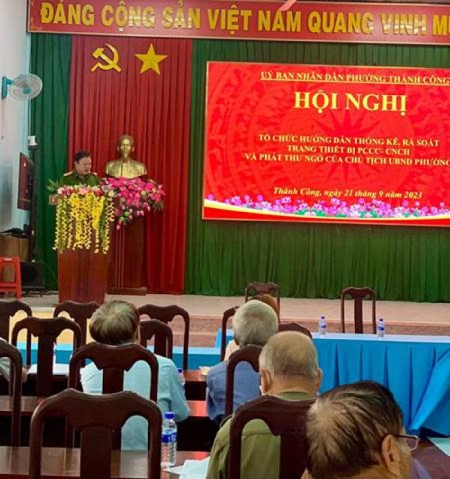 Sáng ngày 21/9/2023, phường Thành Công tổ chức Hội nghị hướng dẫn, thống kê, rà soát trang thiết bị PCCC và CNCH và phát thư ngỏ của Chủ tịch UBND phường.