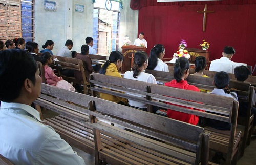 Một buổi thánh lễ tại điểm nhóm sinh hoạt Hội thánh Cơ đốc truyền giáo buôn Giát, xã EA Hiu, huyện Krông Pắc