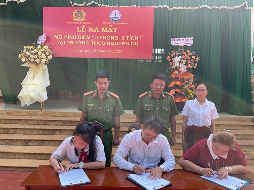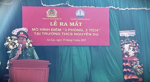 Sáng ngày 19/5/2023 Công an phường An Lạc, phối hợp với Đội XDPT toàn dân BVANTQ Công an TX Buôn Hồ, Trường THCS Nguyễn Du ra mắt mô hình " 3 phòng, 3 tích " để cùng chung sức xây dựng phong trào toàn dân bảo vệ an ninh Tổ quốc. Đến dự có đồng chí Thiếu tá Lê Đình Đô - Phó trưởng Công an thị xã Buôn Hồ; đồng chí Nguyễn Thị Hạnh - Phó chủ tịch UBND phường An Lạc cùng với 705 cán bộ, giáo viên và học sinh trường THCS Nguyễn Du.