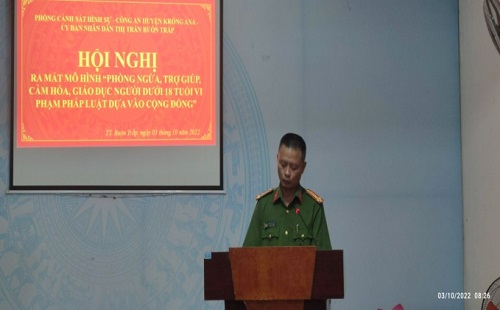 Sáng ngày 03/10/2022, UBND thị trấn Buôn Trấp, huyện Krông Ana đã tổ chức ra mắt mô hình điểm “Phòng ngừa, trợ giúp, cảm hóa, giáo dục người dưới 18 tuổi vi phạm pháp luật dựa vào cộng đồng”.