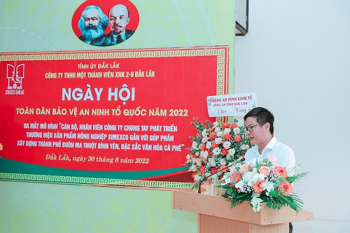 Ngày 30/8/2022, Phòng An ninh kinh tế Công an tỉnh Đắk Lắk đã tham mưu, hướng dẫn Công ty TNHH MTV Xuất nhập khẩu 2-9 Đắk Lắk, tổ chức Ngày hội toàn dân bảo vệ an ninh Tổ quốc và ra mắt Mô hình trong Phong trào Toàn dân bảo vệ an ninh Tổ quốc với tên gọi “Cán bộ, nhân viên Công ty chung tay phát triển thương hiệu sản phẩm nông nghiệp Simexco gắn với góp phần xây dựng thành phố Buôn Ma Thuột bình yên, đặc sắc văn hóa cà phê”. Đến tham dự buổi lễ có đồng chí Đại tá Nguyễn Quốc Khánh - Trưởng phòng An ninh kinh tế; đồng chí Đại úy Nguyễn Đức Thắng - Phó trưởng Phòng Xây dựng phong trào bảo vệ an ninh Tổ quốc cùng các đồng chí lãnh đạo, chỉ huy, cán bộ các đơn vị chức năng thuộc Công an tỉnh Đắk Lắk, Công an phường Thắng Lợi và hơn 100 cán bộ, nhân viên đại diện cho hơn 300 cán bộ, nhân viên Công ty TNHH MTV Xuất nhập khẩu 2-9 Đắk Lắk.