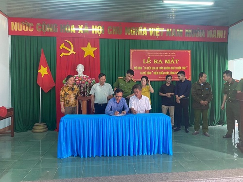 Mô hình “Tổ liên gia an toàn PCCC” được triển khai tại khu vực thôn 1, gồm 08 hộ dân liền kề tham gia. Mỗi hộ được bố trí 01 chuông báo cháy, 02 nút nhấn báo cháy (01 lắp ngoài cổng và 01 lắp trong nhà), khi nhấn chuông cả 08 hộ đều có thể nghe, mỗi hộ trang bị ít nhất 01 bình chữa cháy. Tổ liên gia an toàn phòng cháy và chữa cháycó nhiệm vụ: Triển khai các chủ trương, đường lối, chính sách của Đảng, pháp luật của Nhà nước và quy định về PCCC và CNCH; nắm tình hình liên quan đến công tác PCCC, CNCH, kịp thời phản ánh với UBND, Công an xã để kịp thời xử lý; tuyên truyền, vận động các thành viên hộ gia đình thuộc tổ liên gia tự giác chấp hành các quy định pháp luật về PCCC và CNCH, tích cực tham gia mô hình “Tổ liên gia an toàn PCCC”; thực hiện các điều kiện an toàn PCCC, CNCH và các phương án thoát nạn phòng khi có sự cố cháy xảy ra; tổ chức lực lượng, phương tiện PCCC tại chỗ; tổ chức chữa cháy và CNCH khi có cháy, nổ, sự cố tai nạn xảy ra trong khu vực tổ liên gia; ngoài ra, tham gia các hoạt động PCCC, CNCH khi được cấp có thẩm quyền huy động.