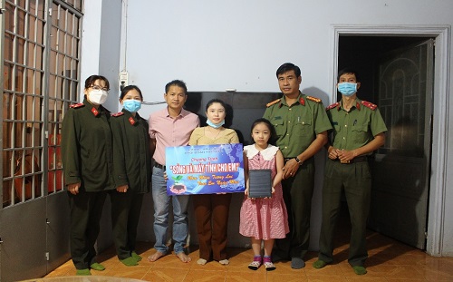 Theo đó, sáng ngày 14/01/2022, Phòng Hậu cần thực hiện chương trình “Sóng và máy tính cho em”, trao tặng 01 máy tính bảng với giá trị 5 triệu đồng cho em Trần Thị Thanh Hằng (sinh năm 2013), là con đồng chí Nguyễn Thị Kim Dung, cán bộ thuộc Trung tâm Ứng dụng khoa học công nghệ Công an tỉnh là gia đình có hoàn cảnh khó khăn. Chương trình đã phần nào chia sẽ khó khăn, giúp cho em Hằng có điều kiện tiếp cận, thích ứng với mô hình giáo dục “trực tuyến”, đang dần trở nên quen thuộc trong tình hình dịch Covid-19 diễn biến phức tạp hiện nay.