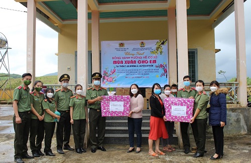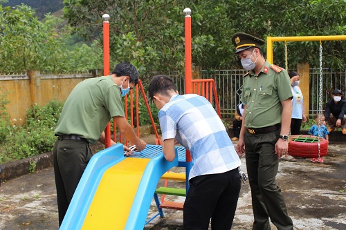 Kết thúc chuỗi các hoạt động chào mừng, nhằm nâng cao hiệu quả công tác kết nghĩa với địa bàn, nhất là góp phần làm tốt công tác bảo vệ, chăm sóc, giáo dục trẻ em, ngày 18/01, Phòng Hậu cần tổ chức hoạt động hướng về cơ sở với chủ đề “Mùa xuân cho em” tại Trường Mầm non Hoa Đào (phân hiệu II) thuộc địa bàn Thôn 7, xã Krông Á, huyện M’Đrắk. Trong chương trình, phòng Hậu cần tiến hành lắp đặt xích đu, trao tặng một số thiết bị trò chơi, cải tạo sân chơi ngoài trời cho các em học sinh mầm non. Ngoài ra, phòng Hậu cần còn trao tặng 02 phần quà cho trường Mầm non Hoa Đào, phối hợp với Công đoàn Công an tỉnh trao tặng 91 phần quà cho 01 hộ gia đình chính sách và các hộ gia đình có hoàn cảnh khó khăn tại Thôn 7, xã Krông Á, huyện M’Đrắk. Tổng kinh phí chương trình là 65 triệu đồng từ nguồn xã hội hóa và đóng góp ủng hộ của CBCS trong đơn vị.