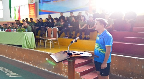Phát biểu tại buổi lễ khai mạc, đồng chí Thượng tá Huỳnh Thanh Bình - Bí thư Đảng ủy, Trưởng phòng Hậu cần đã hoan nghênh các vận động viên các đơn vị về tham gia hội thao, chúc các vận động viên thi đấu với tinh thần nhiệt tình, vui vẻ, chấp hành nghiêm túc các quy định của Ban Tổ chức, chúc Hội thao diễn ra thành công. Đại diện các vận động viên đồng chí Phan Trần Thành - Bí thư chi Đoàn phòng Hậu cần đã lên tuyên thệ và xin hứa sẽ thi đấu hết mình trên tinh thần giao lưu, đoàn kết.
