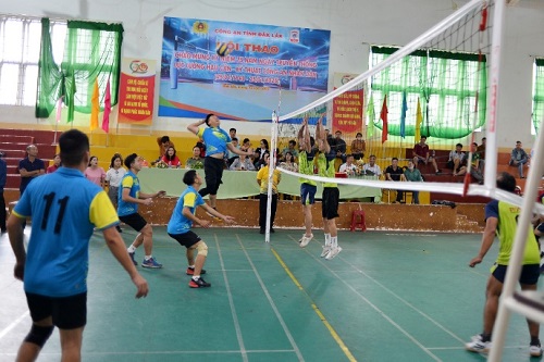 Hình ảnh trận thi đấu bóng chuyền nam giữa Phòng Hậu cần và Phòng An ninh nội địa