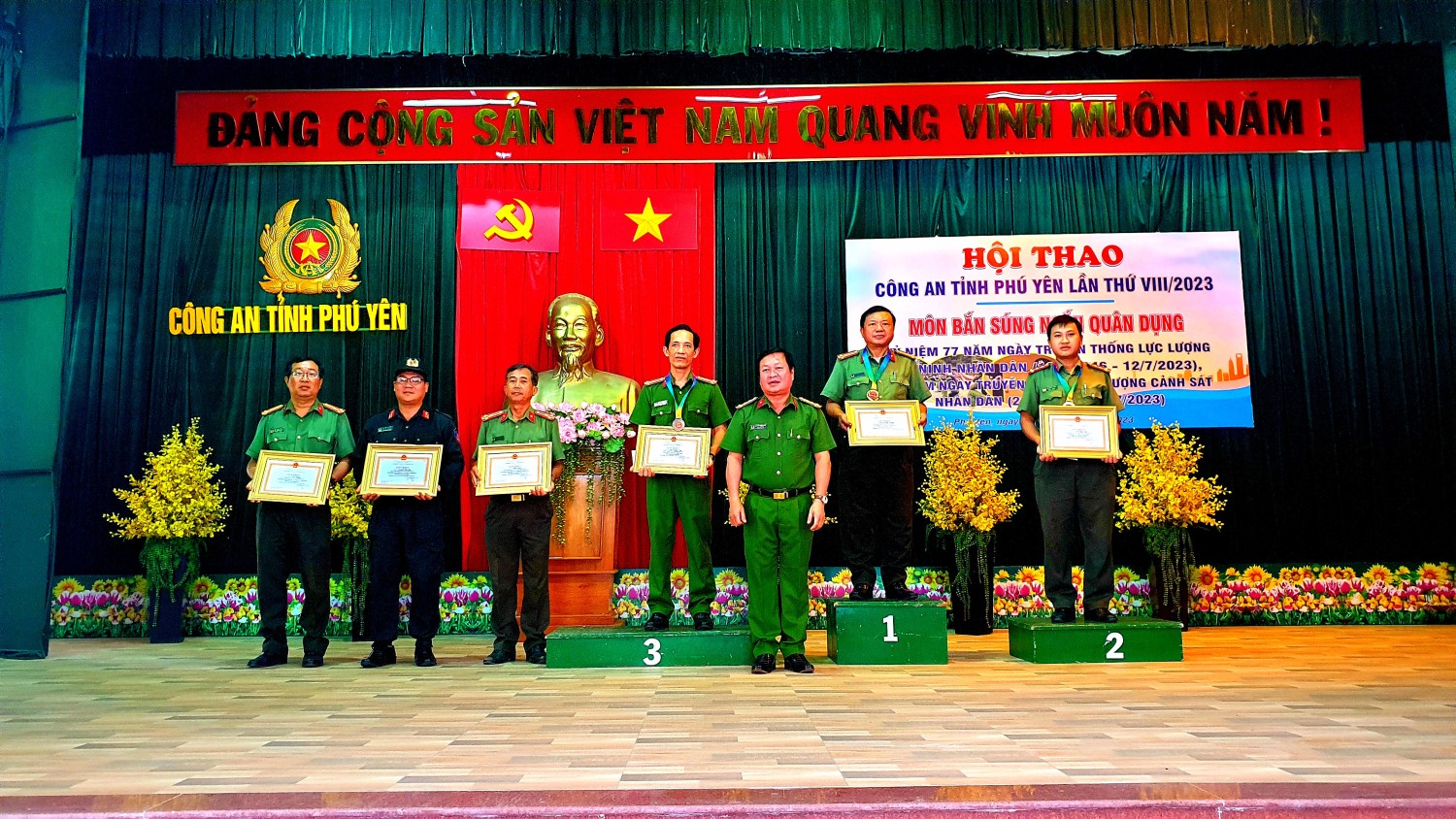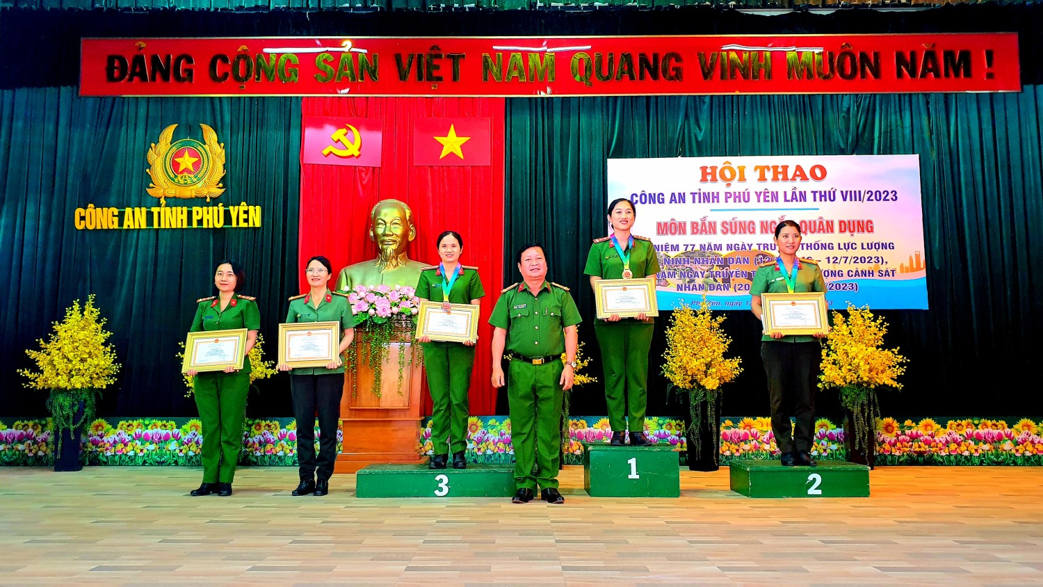 Sau 2 ngày tranh tài sôi nổi, kết quả, Ban tổ chức đã trao 26 giải cho các tập thể, cá nhân đạt thành tích xuất sắc. Giải nhất cá nhân lãnh đạo thuộc về đồng chí Nguyễn Hữu Thành - Phó Trưởng phòng Công tác Đảng và Công tác chính trị; giải nhì thuộc về đồng chí Lưu Minh Tính – Phó Trưởng Công an TP Tuy Hoà và giải ba thuộc về đồng chí Trần Thanh Tâm – Trưởng phòng Cảnh sát Hình sự. Giải nhất cá nhân nữ thuộc về đồng chí Cao Thị Thu Thương –Công an huyện Sông Hinh, đồng chí Tạ Thị Huyền Mơ – Đội trưởng, Công an huyện Phú Hoà đoạt giải nhì và giải ba thuộc về đồng chí Hồ Thị Hồng – Đội trưởng, Văn phòng Cơ quan Cảnh sát điều tra. Giải nhất cá nhân nam là đồng chí Nguyễn Đăng Khôi – Phó Đại đội trưởng, Phòng Cảnh sát Cơ động, đồng chí Tạ Đình Tuấn – Phòng Tổ chức Cán bộ đoạt giải nhì, giải ba thuộc về đồng chí Nguyễn Bác Ái – Công an thị xã Sông Cầu. Giải nhất đồng đội thuộc về phòng Tổ chức Cán bộ, phòng Cảnh sát thi hành án hình sự và Hỗ trợ tư pháp đoạt giải nhì và giải ba thuộc về Công an thị xã Đông Hoà.