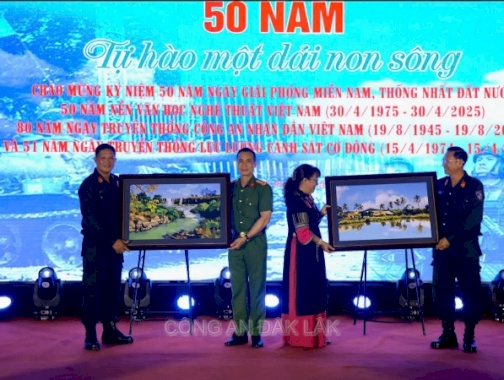Phòng Cảnh sát cơ động đã tham gia chương trình Tọa đàm với chủ đề “50 năm - Tự hào một giải non sông” cùng các tiết mục văn nghệ đặc sắc với Trung đoàn Cảnh sát cơ động Tây Nguyên và Hội văn học nghệ thuật tỉnh Đắk Lắk