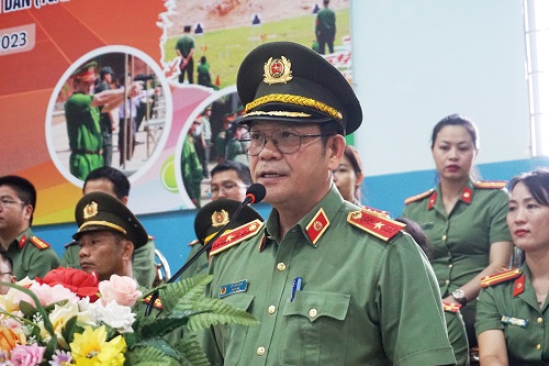 Thiếu tướng Lê Vinh Quy - Giám đốc Công an tỉnh phát biểu khai mạc hội thao