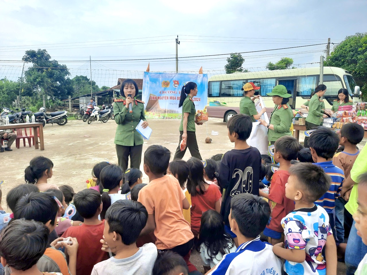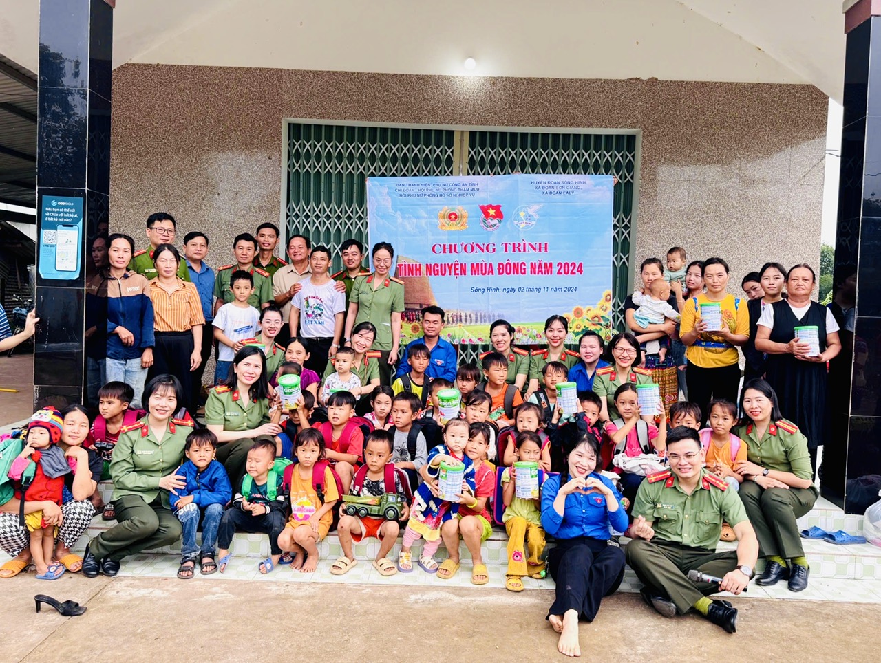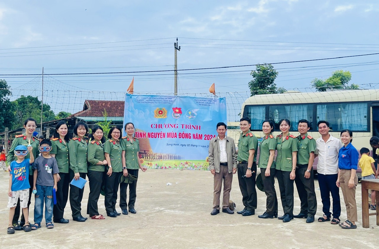 Chi đoàn - Hội Phụ nữ Phòng Tham mưu phối hợp với Hội Phụ nữ Phòng Hồ sơ nghiệp vụ Công an tỉnh đã tổ chức các hoạt động dân vận, “Tình nguyện mùa đông” năm 2024 tại huyện Sông Hinh, với sự tham gia của gần 20 đoàn viên, hội viên phụ nữ Công an tỉnh, đã tổ chức nhiều hoạt động ý nghĩa, thiết thực. Sáng ngày 02/11/2024, tại xã Sơn Giang, huyện Sông Hinh diễn ra nhiều hoạt động như: tặng 01 bản đồ Việt Nam cho Công an xã Sơn Giang nhằm hưởng ứng Cuộc vận động “Tự hào một dải non sông” do Trung ương đoàn TNCS Hồ Chí Minh phát động; thực hiện công trình “Tủ sách cho em” trao tặng cho thư viện trường Tiểu học Sơn Giang; tổ chức tuyên truyền pháp luật tại Hội trường UBND xã Sơn Giang và trao tặng 02 suất quà (500.000 đồng tiền mặt/suất) cho các em học sinh có hoàn cảnh đặc biệt khó khăn, vượt khó học giỏi của Trường THCS và THPT Võ Văn Kiệt; thăm, tặng 03 phần quà (trị giá 500.000 đồng/suất) cho các đồng chí là lực lượng tham gia bảo vệ an ninh, trật tự ở cơ sở của xã có hoàn cảnh khó khăn; đặc biệt là hoạt động tặng quà cho đồng bào người Mông tại thôn Nam Giang (tặng hơn 40 lon sữa cho các gia đình có con nhỏ, tổ chức gian hàng “0 đồng” (gồm quần áo, dụng cụ gia đình, đồ dùng sinh hoạt, đồ chơi, cặp sách...) cho bà con và các em nhỏ đồng bào.