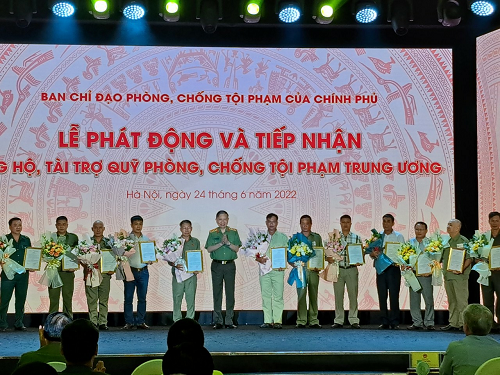 Ông Lê Xuân Mao (áo trắng, đứng thứ tư từ trái qua) vinh dự được Bộ trưởng Bộ Công an tặng Bằng khen trong phong trào toàn dân bảo vệ ANTQ vì đã có thành tích xuất sắc trong công tác đấu tranh phòng chống tội phạm