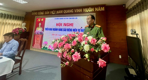 Phát biểu tại hội nghị, đồng chí Trần Quang Hiếu – Phó Giám đốc Công an tỉnh cho hay Từ khi Nghị định thư về xuất khẩu quả sầu riêng tươi sang thị trường Trung Quốc được ký kết đến nay đã có nhiều mã số vùng trồng và mã số cơ sở đóng gói bị Tổng cục Hải quan Trung Quốc có kiến nghị đề nghị Cục Bảo vệ thực vật - Bộ Nông nghiệp và Phát triển nông thôn Việt Nam kiểm tra và xác minh, trong đó có nhiều mã tại Đắk Lắk. Tình hình trộm cắp sầu riêng, bẻ cọc, bỏ vườn… diễn biến phức tạp, nhất là thời điểm giá sầu riêng tăng cao. Tình hình nợ tiền của một số đơn vị thu mua đối với thương lái dẫn đến có đơn thư tố cáo, tập trung đông người đòi tiền tại trụ sở doanh nghiệp gây ảnh hưởng đến tình hình ANTT.