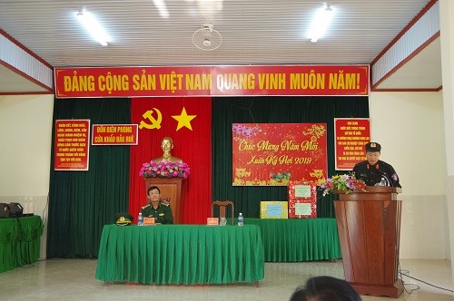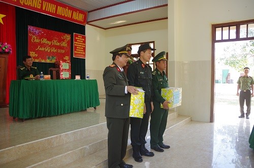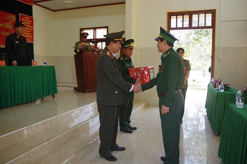 Đ/c Đại tá Vũ Hồng Văn, Giám đốc Công an tỉnh phát biểu chúc Tết cán bộ, chiến sĩ Đồn Biên phòng 739