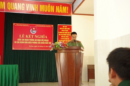 Để tiếp tục phát huy những kết quả tích cực, được sự đồng ý của Giám đốc Công an tỉnh và Chỉ huy trưởng Bộ chỉ huy Bộ đội Biên phòng tỉnh, ngày 24/01/2019, tại đồn Biên phòng cửa khẩu Đắk Ruê, Phòng An ninh đối ngoại và Đồn Biên phòng cửa khẩu Đắk Ruê đã tổ chức Lễ kết nghĩa nhằm góp phần làm sâu sắc thêm mối quan hệ đoàn kết, cùng nhau phối hợp đảm bảo giữ vững an ninh, trật tự trên tuyến biên giới. Thông qua việc ký kết giao ước thi đua, hai đơn vị đã thống nhất các nội dung phối hợp nhằm bảo đảm an ninh chính trị, trật tự, an toàn xã hội, đấu tranh phòng, chống các loại tội phạm ở khu vực biên giới trong thời gian tới. Trong khuôn khổ hoạt động kết nghĩa, hai đơn vị đã tổ chức thăm hỏi, động viên, chúc Tết, tặng quà gia đình bà mẹ Việt Nam anh hùng, gia đình có công với cách mạng, gia đình chính sách, có hoàn cảnh khó khăn tại xã Ea Bung, huyện Ea Súp để tô đậm thêm tình cảm quân – dân sắt son đối với bà con Nhân dân sinh sống trên địa bàn, thể hiện truyền thống “Đền ơn đáp nghĩa, uống nước nhớ nguồn”.