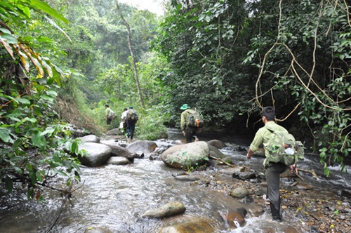 Kiểm lâm Vườn Quốc gia Chư Yang Sin cùng người nhận khoán rừng tuần tra bảo vệ rừng