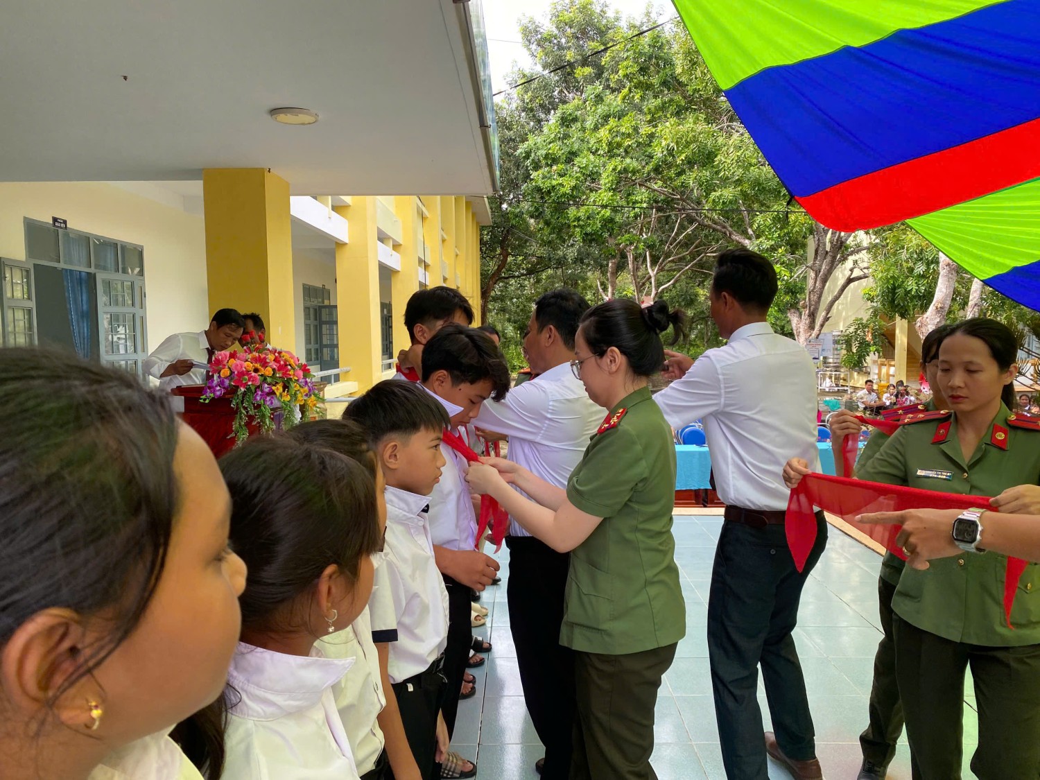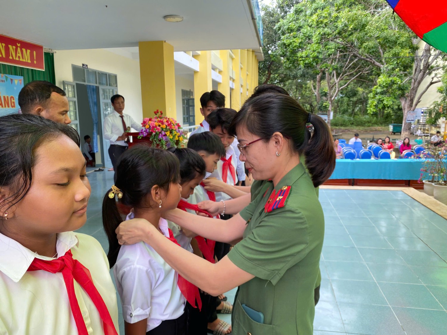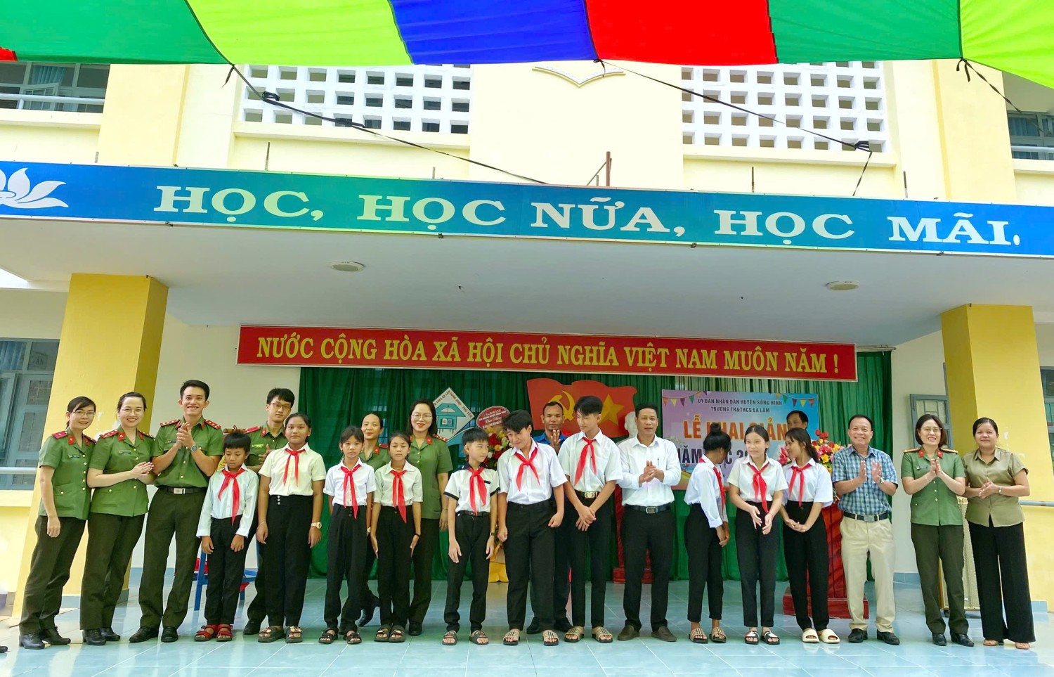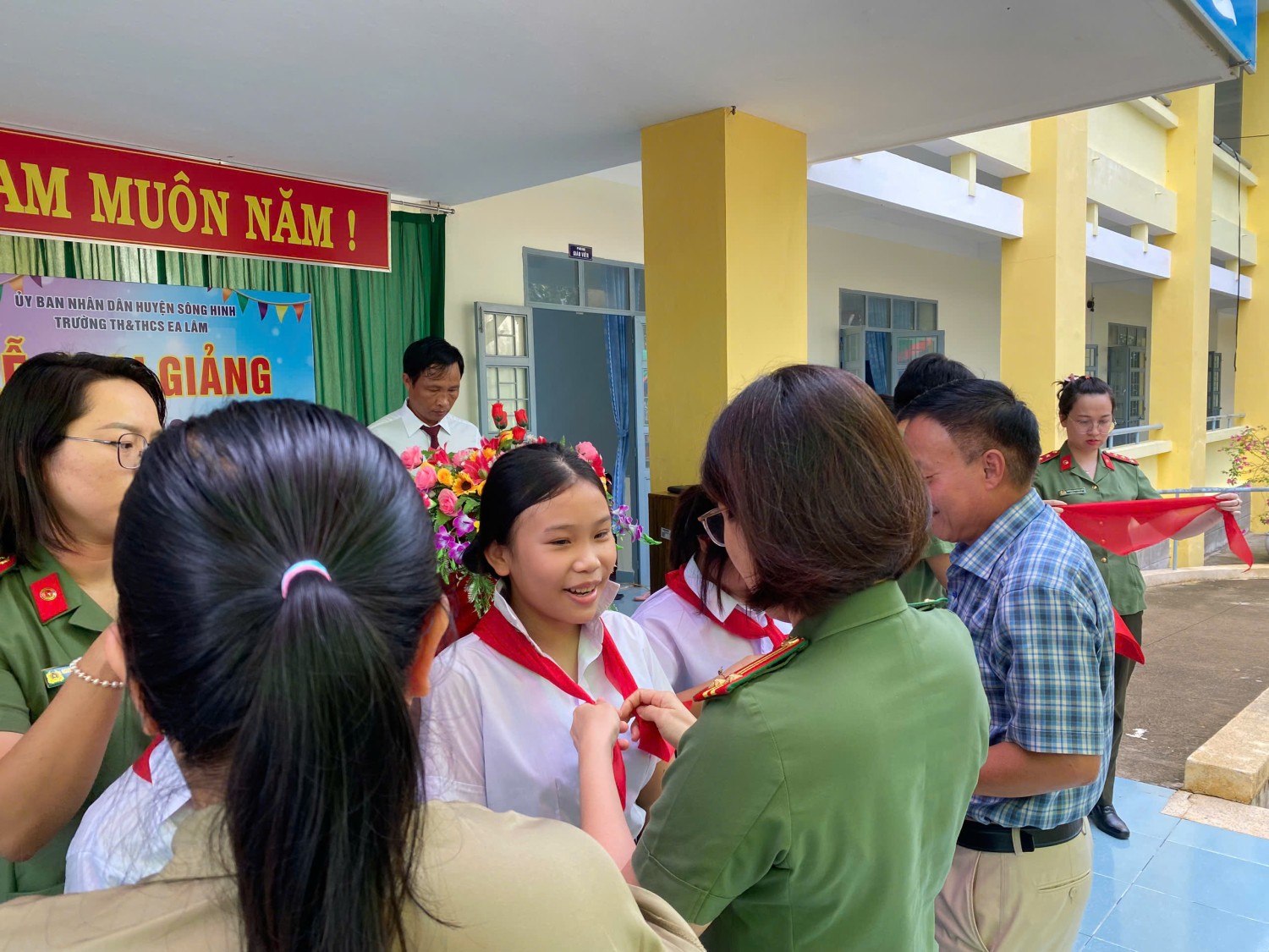 Được sự đồng ý của Đảng uỷ Phòng Hậu cần, ngày 05/9/2024, Đoàn cơ sở, Hội phụ nữ cơ sở phối hợp tổ chức Chương trình "Tặng khăn quàng - Nối ước mơ” cho các em học sinh Trường tiểu học, trung học cơ sở Ea Lâm, huyện Sông Hinh, tỉnh Phú Yên nhân dịp khai giảng năm học mới 2024-2025. Nhằm góp phần vun đắp tình yêu thương đối với học sinh nghèo có hoàn cảnh khó khăn, đồng thời tạo không khí vui tươi, phấn khởi khơi dậy tinh thần hiếu học các em học sinh trước thềm năm học mới, Đảng uỷ Phòng Hậu cần Công an tỉnh đã trao tặng 570 chiếc khăn quàng cho các em học sinh tiểu học và trung học tại trường, tặng 5 suất học bổng cho các em học sinh có hoàn cảnh khó khăn vươn lên học giỏi. Tổng kinh phí hoạt động chương trình 5 triệu đồng từ nguồn đóng góp của CBCS, nhân viên lao động hợp đồng. Hoạt động “Tặng khăn quàng - Nối ước mơ” những món quà trong ngày đầu tiên đến trường, bắt đầu một năm học mới 2024 - 2025, thắp sáng niềm tin các em học sinh, qua đó các em thấy được sự quan tâm đặc biệt của xã hội đối với thế hệ măng non nói chung và của Phòng Hậu cần Công an tỉnh nói riêng và cũng là niềm động viên cho các em vươn lên trong học tập, trở thành con ngoan trò giỏi, có ích cho gia đình và xã hội./.