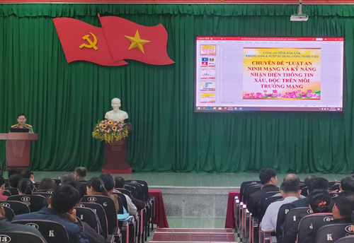 Tại buổi tập huấn, đồng chí Trung tá Nguyễn Huy Nam – Trưởng phòng An ninh mạng và phòng, chống tội phạm sử dụng công nghệ cao trực tiếp báo cáo chuyên đề “Luật An ninh mạng và kỹ năng nhận diện thông tin xấu, độc trên môi trường mạng”. Nội dung báo cáo chuyên đề tập trung phân tích, đánh giá xu hướng phát triển công nghệ viễn thông, các ứng dụng mạng Internet, mạng xã hội; thực trạng hoạt động của các tổ chức, cá nhân trên môi trường không gian mạng trên địa bàn hiện nay, nhất là việc sử dụng mạng xã hội (Facebook, Youtube, TikTok…) để thực hiện các hành vi vi phạm pháp luật như: “Làm, tàng trữ, phát tán hoặc tuyên truyền thông tin, tài liệu, vật phẩm nhằm chống Nhà nước Cộng hòa xã hội chủ nghĩa Việt Nam” (điều 117, Bộ luật Hình sự); “Lừa đảo chiếm đoạt tài sản” (điều 174, Bộ luật Hình sự); “Lợi dụng quyền tự do dân chủ, xâm phạm quyền và lợi ích hợp pháp của tổ chức, cá nhân” (điều 331 của Bộ luật Hình sự); đăng tải thông tin, hình ảnh “bốc phốt”, xúc phạm danh dự, nhân phẩm của cá nhân…). Qua đó, định hướng cho đội ngũ cán bộ, chuyên viên nắm vững, hiểu sâu sắc tình hình hoạt động trên không gian mạng góp phần nâng cao khả năng nhận diện những thông tin xấu độc, xuyên tạc, sai sự thật, chống phá Đảng, Nhà nước, những hành vi bị cấm trên không gian mạng theo quy định Luật An ninh mạng, Bộ Quy tắc ứng xử trên không gian mạng.